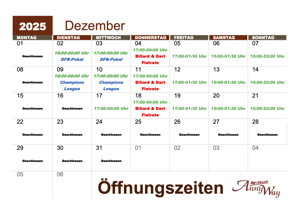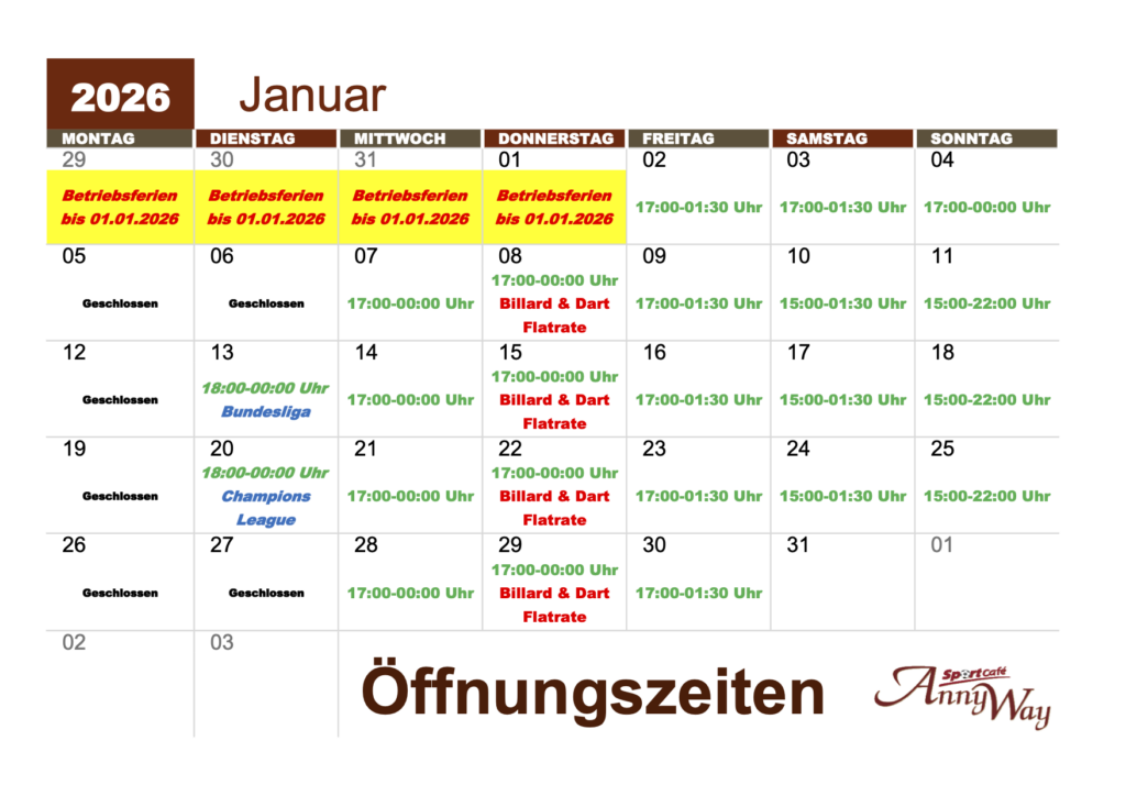 Ja, aufgrund der bestehenden Hygieneverordnung und des reduzierten Billard- und Dartangebots beträgt der Mindestverzehr 5€ pro Person.