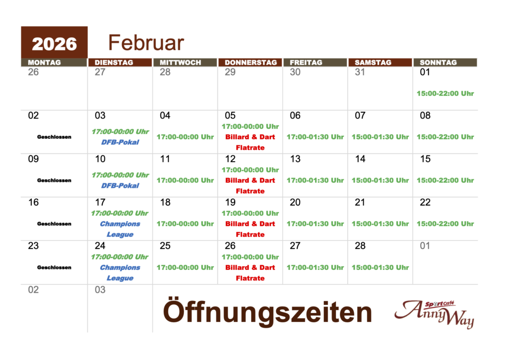 Ja, aufgrund der bestehenden Hygieneverordnung und des reduzierten Billard- und Dartangebots beträgt der Mindestverzehr 5€ pro Person.